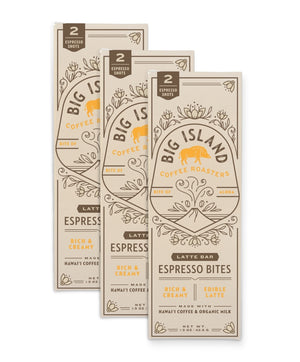 A double shot latte in a smooth, velvety bar. Latte Espresso Bites are crafted with 100% Hawaiian coffee, organic milk, and organic ingredients. It’s like carrying a latte in your pocket—ready whenever you are.