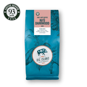 Kaʻū Darkwood is a bold, full-bodied dark roast crafted from 100% Kaʻū coffee — the same origin and beans as our celebrated Kaʻū Morning Glory, but roasted deeper to unlock a different range of flavors. With rich notes of fudge, molasses, blackberry, vanilla, and spruce, this coffee delivers a silky, layered experience that satisfies both black coffee purists and those who enjoy milk-based drinks.