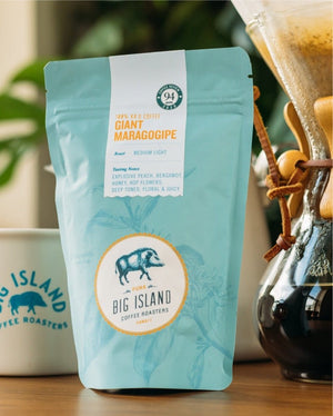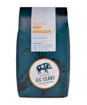 Kaʻū Maragogipe is one of the rarest and most distinctive coffees we offer—highly sought after, frequently requested, and available only a few times each year. Known for its unusually large size, Maragogipe (pronounced mah-rah-go-HEE-peh) is a natural mutation of the Arabica Typica variety, first identified in 1870 near the Brazilian city of Maragogipe. Often called the “elephant bean,” it produces a visually striking green bean with a reputation for elegance and complexity in the cup.