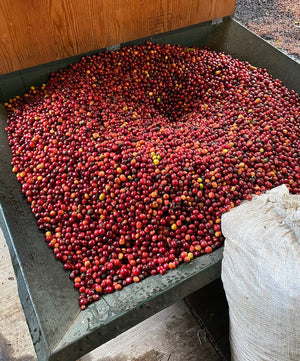 Kona Red Bourbon was grown by Franck of Uluwehi Farm at an elevation of 1800ft. It was processed via controlled fermentation with a wine yeast that is commonly used to ferment Rosé, Viognier, and Chardonnay. By using this wine yeast, Franck is 'dialing in' the flavor profile of this coffee in the same way that vintners do with wine.