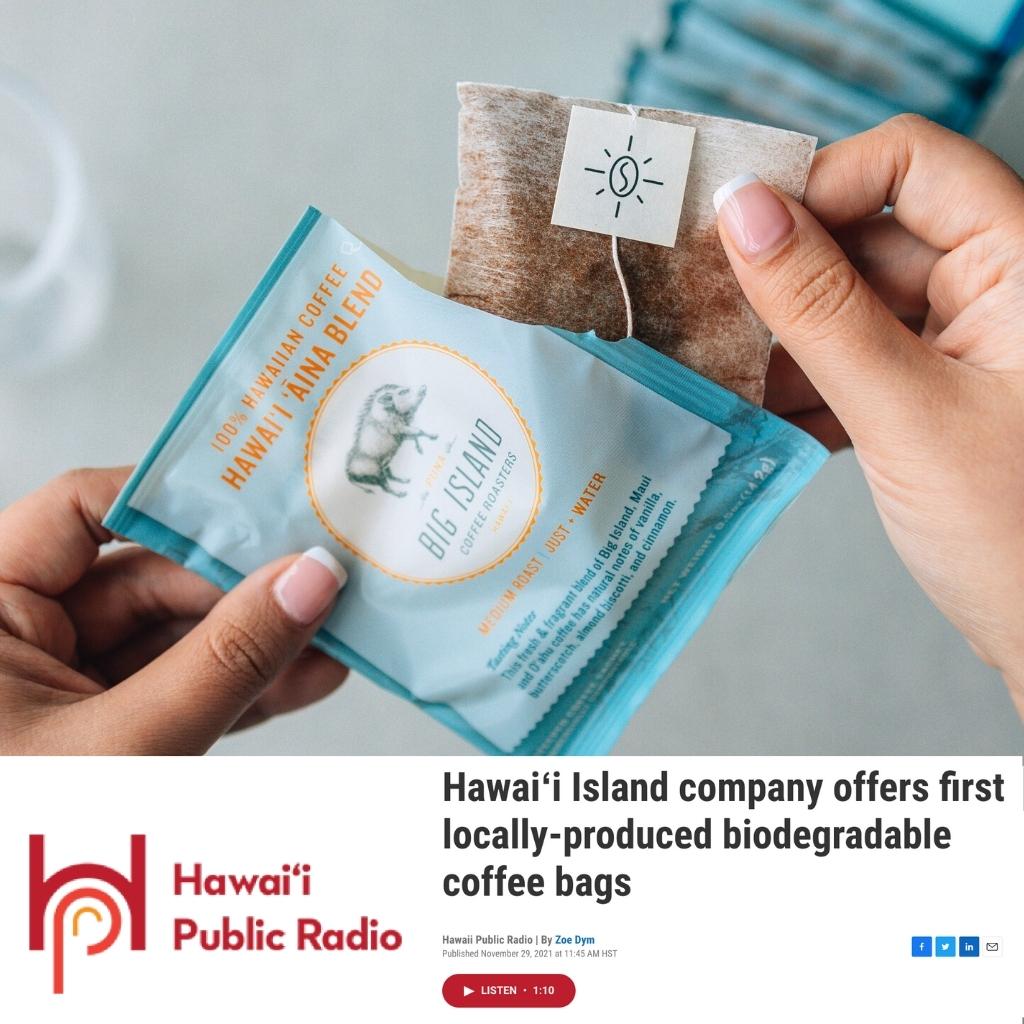 Big Island Coffee Roasters is putting Hawaiʻi-grown coffee in acompostable "instant" single-serve pouch that looks similar to a teabag. The bags only require hot water…