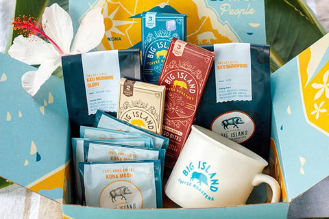 Build your own memorable, authentically Hawaiian gift from local coffees, compostable single serve Hawaiian coffees, Espresso Bites, mugs, māmaki tea, gift boxes and more.