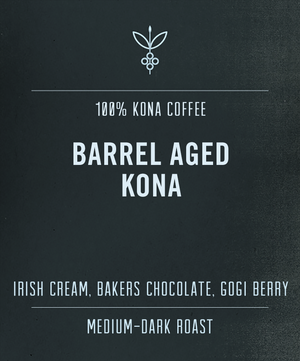 Barrel-Aged Kona is a sweetly spice-toned coffee that’s lightly aged in bourbon whisky barrels, resulting in aromatic bourbon notes that compliment the natural tasting notes of this 100% Kona coffee.
