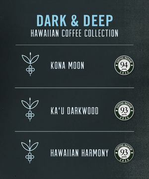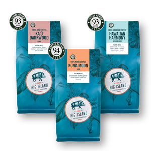 This collection is for darker coffee lovers and tours Hawaii through 3 different growing regions: Kona, Ka'u & Hawaiian coffee. Each coffee is roasted to order and comes with the roast date on the bag.