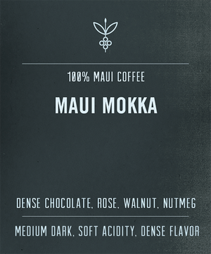 We’re extremely happy to present Maui Mokka - a full-bodied Maui coffee with a subtle flavor combined with a unique taste. It interweaves a range of notes that include some hints of dense dark chocolate, a few notes of rose, some notes of roasted walnuts, some notes that offer a dash of cinnamon and nutmeg, and … finally venti-size doses of pure excellence in a cup.