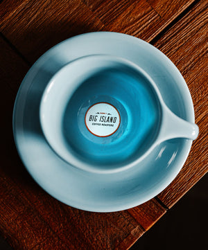 Each cup in the series is manufactured with ergonomics and durability in mind by notNeutral. The series showcases the flora and fauna from Kīlauea Volcano to our beachside cafe in Hilo, illustrating our journey, from Mauka (mountain) to Makai (water).